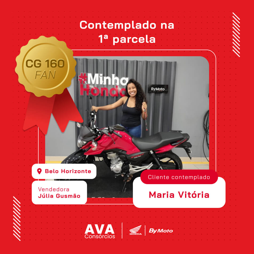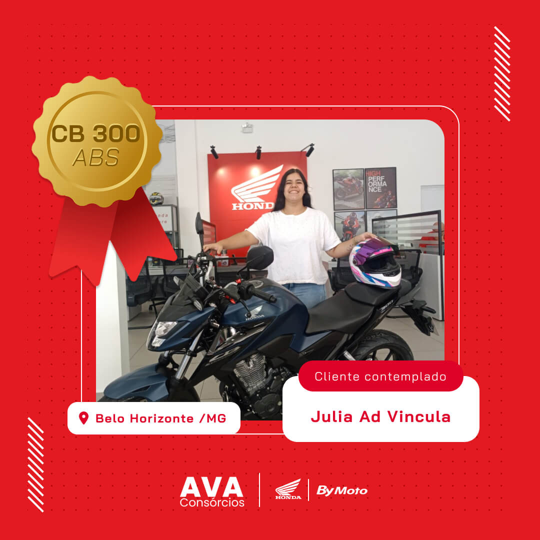 Primeiro agradecer a Deus por essa conquista e depois a AVA Consórcios por realizar meu sonho. Obrigada!!!
